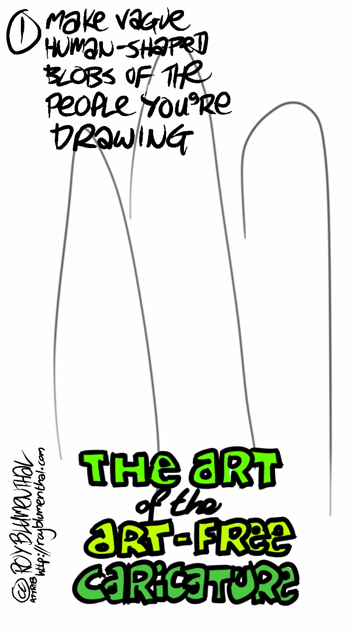 Start by forgetting about perfection. In this example, there are three people having a panel discussion. Draw three vague blobs that sort of look like upright humans… Otherwise known as half-ovals.